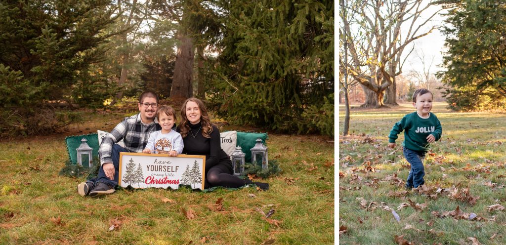 I’ll be returning to Governor Oliver Ames Park in Easton, MA for my holiday park minis!! It is the perfect setting with tons of pine trees, trickling sun through the trees, pine cones and open grassy areas for super fun walking photos. I do a simple setup with a blanket and some props.