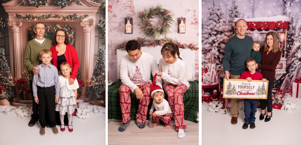 Yay for holiday studio minis, eeeek! I’m so excited to open up booking so early in the year. As always, I have 3 backdrops to choose from. They are Holiday Bed, Candy Cane Lane and my brand new Festive Doorway!! These are perfect for the family or just the kids. You can get dressed up, keep it more casual or come in your matching pj’s.